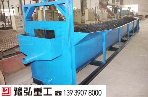 螺旋洗砂機(jī)是洗砂機(jī)的一種,主要通過(guò)設(shè)備內(nèi)的螺旋裝置對(duì)砂石料進(jìn)行攪拌,從而使砂石料中的泥土與水進(jìn)行混合,從設(shè)備上的流口排出,而砂石料則在螺旋裝置的作用下被逐步篩選,從頂端的出料口排出,從而實(shí)現(xiàn)了砂石料的清洗篩選效果。
