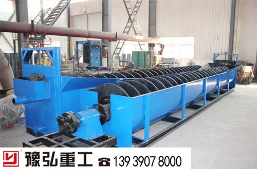 螺旋洗砂機(jī)是洗砂機(jī)的一種,主要通過(guò)設(shè)備內(nèi)的螺旋裝置對(duì)砂石料進(jìn)行攪拌,從而使砂石料中的泥土與水進(jìn)行混合,從設(shè)備上的流口排出,而砂石料則在螺旋裝置的作用下被逐步篩選,從頂端的出料口排出,從而實(shí)現(xiàn)了砂石料的清洗篩選效果。